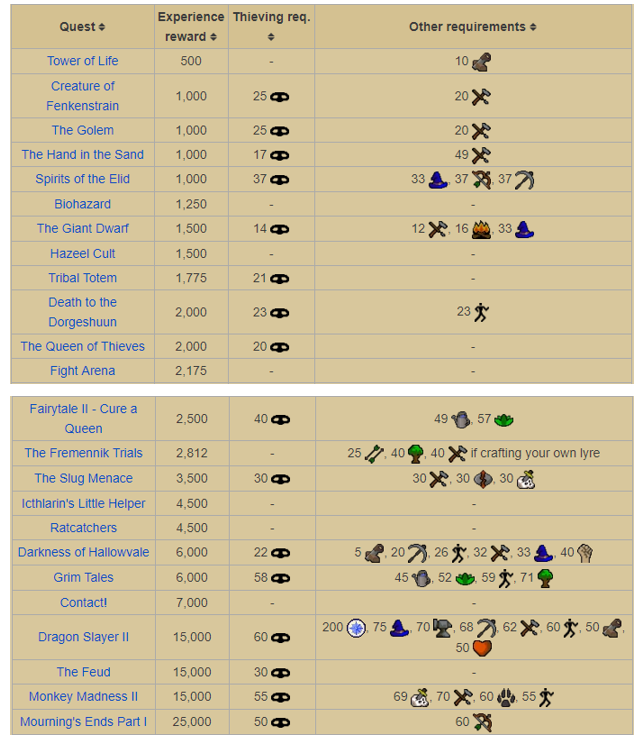 Before we get into the OSRS thieving guide, we'd like to mention the importance of questing. The early levels of thieving can be quite tedious and click intensive, so we suggest completing a few quests that provide a decent amount of thieving experience to zoom through the early stages. Here's the list of all OSRS quests that provide thieving experience.