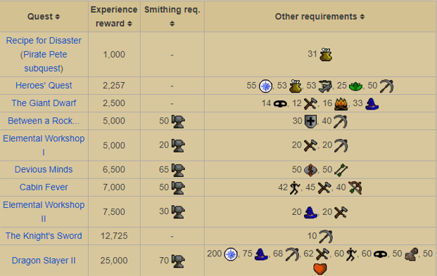 To speed up your quest to 99 Smithing, we recommend going through a few quests to get through those tedious early levels. Some of these quests in the list below provide exceptional amounts of Smithing experience, so we heavily recommend doing a few! Here's a list of all the quests in OSRS that provide Smithing Experience.