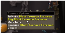 This method, for the most part, is the same as the Blast Furnace method we saw in the earlier part of the guide (so make sure you read that!), but there's a few changes. Firstly, instead of goldsmith gauntlets, you'll be bringing a coal bag. Secondly, instead of gold ore, you'll be bringing the same amount of iron ore and coal. In addition, the steps in which you take to smelt your ore will be different.